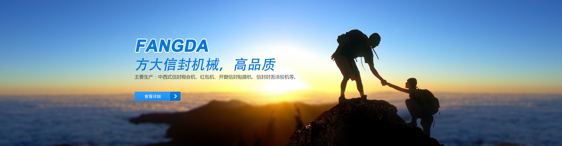 瑞安方大信封機(jī)械有限公司,是專業(yè)生產(chǎn)信封機(jī)糊合設(shè)備系列產(chǎn)品的企業(yè),主要產(chǎn)品有:中西式信封糊合機(jī)、紅包機(jī)、開窗信封貼膜機(jī)、信封封舌涂膠機(jī)等。實(shí)力來自規(guī)模,品質(zhì)源自專業(yè)。我廠擁有專業(yè)老練的工程設(shè)計(jì)人員,經(jīng)驗(yàn)豐富的生產(chǎn)安裝人員,嚴(yán)謹(jǐn)認(rèn)真的質(zhì)量檢驗(yàn)人員,從而保證了所生產(chǎn)機(jī)械的優(yōu)良品質(zhì)。此外,我廠也將從技術(shù)上、性能上不斷改進(jìn)提高,以更好的滿足客戶的需求。“客戶至上,服務(wù)為本”是我廠長期一貫的服務(wù)理念,從安裝、測(cè)試、保養(yǎng)、維修等售后服務(wù),我們會(huì)給予客戶充足的信息資訊與技術(shù)支持,因此在業(yè)界獲得良好的口碑及信譽(yù),您的滿意是我們的榮耀!歡迎您來電查詢、來人參觀,我們一定能給你滿意的答復(fù)!秉承“顧客至上,銳意進(jìn)取”的經(jīng)營理念,堅(jiān)持“客戶為先”的原則為廣大客戶提供溫馨的服務(wù)。歡迎惠顧!